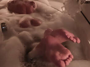 Huuumm j'adore, ton pied ta main ta bouche sur la bite de monsieur....très excitant. Jolis seins merci pour ces photos excitantes a souhait.